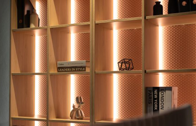 - Deja marca: la clave no es solo que el logotipo esté presente, sino que se integre de forma creativa y natural. Desde ESTILO proponemos incorporar iluminación en el mostrador y, según el material, grabar la marca de forma sutil, dando un resultado diferenciador. También se puede integrar la marca en la pared o en elementos decorativos.