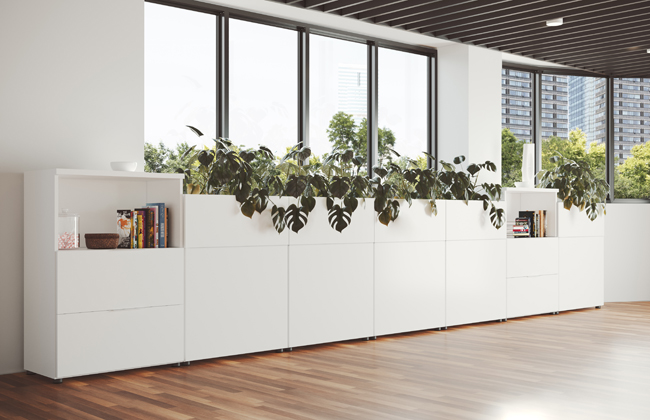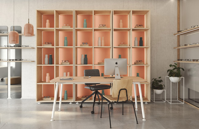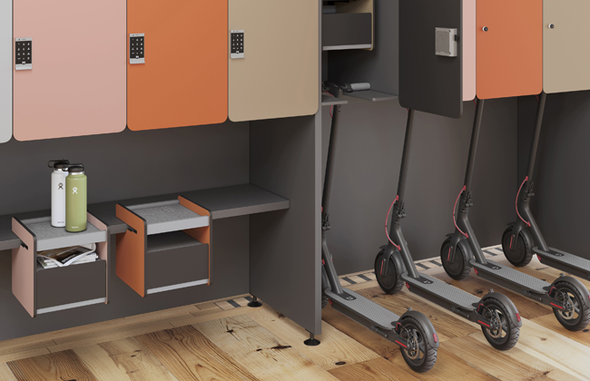- Flujo de tráfico que guíe al cliente desde la entrada: si la recepción no está justo en la entrada, lo solucionamos con señales visuales en el suelo, paneles creativos integrados en el diseño o iluminación que guíe de forma sutil, intuitiva y efectiva. Se puede equipar con unas taquillas personalizables con tecnología integrada para que el visitante deje su abrigo, mochila o portátil. Diseño a medida, colores que encajan con la identidad de la empresa y cerraduras electrónicas son algunos detalles que marcan la diferencia.