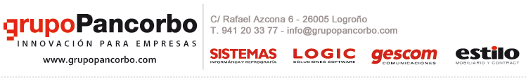 ADVERTENCIA LEGAL.- Este correo electrónico contiene información de carácter confidencial exclusivamente dirigida a su destinatario. Queda prohibida su divulgación, copia o distribución a terceros. En el caso de haberlo recibido por error, se ruega notifique esta circunstancia de inmediato al emisor del mensaje, procediendo a la destrucción del mismo. POLITICA DE PROTECCION DE DATOS.- Le informamos que sus datos de carácter personal son tratados como Responsable por, SISTEMAS DE OFICINA DE RIOJA S.L., LOGIC SOLUCIONES SOFTWARE, S.L., GESTIÓN DE COMUNICACIONES Y DATOS S.L. y ESTILO INSTALACIONES Y EQUIPAMIENTOS S.L., respectivamente domiciliadas en Logroño, C/Rafael Azcona 6, C/Rafael Azcona 8, C/Rafael Azcona 12 y Avda. de Colón 83, bajo, local 4. El tratamiento de estos datos tiene como finalidad el envío del boletín informativo. La base jurídica para el tratamiento de sus datos es el interés legítimo en algunos casos y en otros el consentimiento prestado al suscribirse a este servicio. Puede ejercer en todo momento sus derechos de acceso, rectificación supresión y oposición así como su derecho a solicitar la limitación del tratamiento o realizar la portabilidad de sus datos en la dirección arriba indicada. Asimismo, tiene derecho a presentar una reclamación ante la Agencia Española de Protección de Datos como Autoridad de Control como Autoridad de Control. Le informamos tanto de que no se cederán sus datos a terceros como de que no se realizarán transferencias internacionales de datos, salvo obligación legal o que usted preste el consentimiento expreso. Por último, para obtener una información más exhaustiva acerca del tratamiento que la empresa realiza de sus datos personales, puede consultar nuestra política de privacidad a través de las páginas web: www.sistemasinformatica.com, www.logicsoluciones.com y www.gescomcomunicaciones.com y www.estilomobiliario.com Puede darse de baja en comunicacion@grupopancorbo.com |