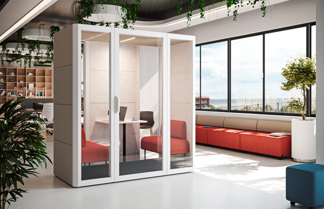 El ruido es uno de los grandes enemigos del bienestar en la oficina. Rompe el ritmo, desconcentra y aumenta el estrés. Soluciones como paneles acústicos o cabinas para llamadas y reuniones rápidas ayudan a crear ambientes más serenos sin renunciar a zonas abiertas pensadas para colaborar.